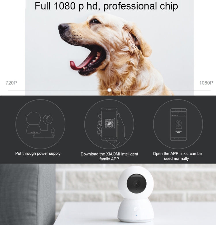 Original Xiaomi MIJIA Xiaobai Smart Home Security Camera 1080P Full HD 360 Degrees Pan-shot Motion Detection Infrared Vision Family Assistant, Support Two-way Voice Calls & One Way Video Call & Interactive Voice Chat & Micro SD Card(White)