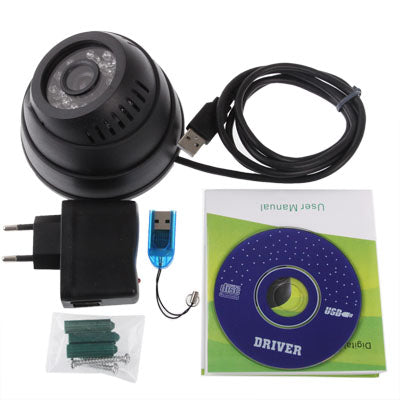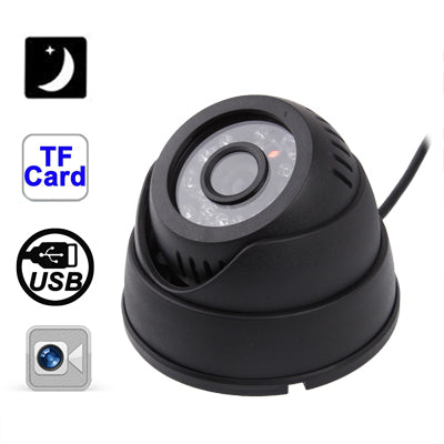 USB Motion Detection Night Vision Home Security DVR Dome Camera with TF Card Slot, Support Loop Recording / Simultaneous Recording / Clock Adjustment(Black)