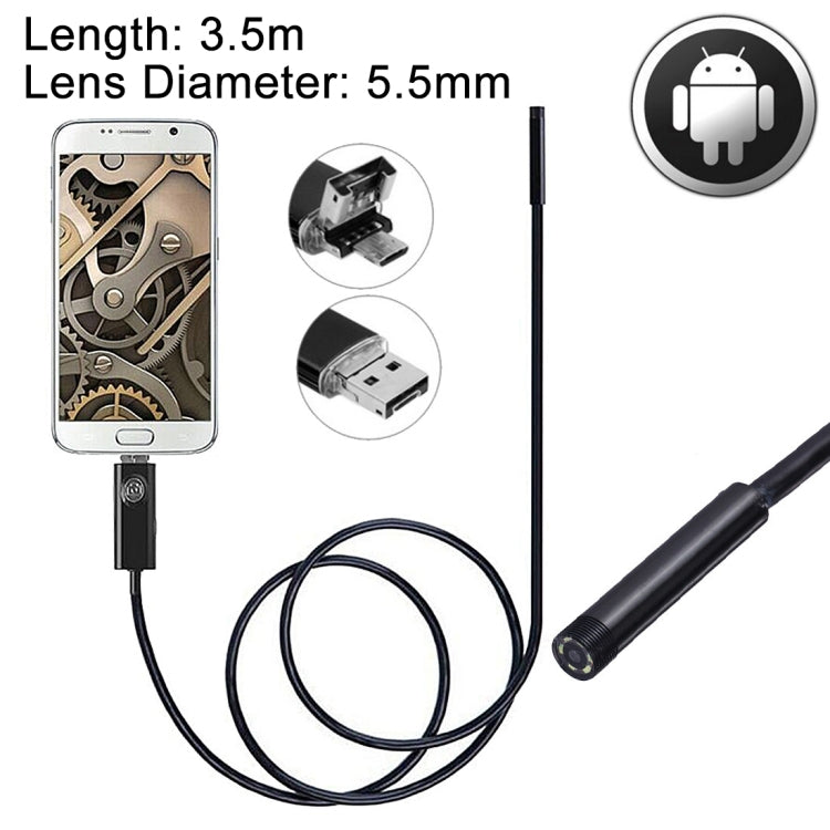 2 in 1 Micro USB & USB Endoscope Waterproof Snake Tube Inspection Camera with 6 LED for Newest OTG Android Phone, Length: 3.5m, Lens Diameter: 5.5mm