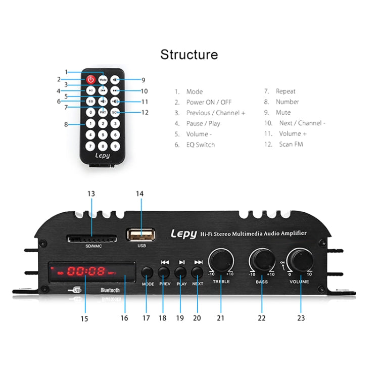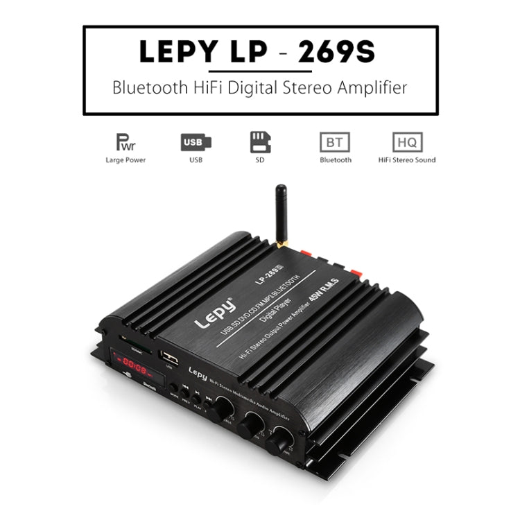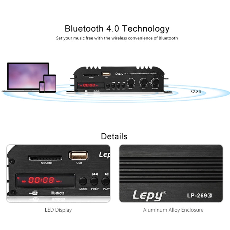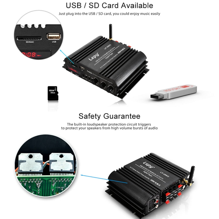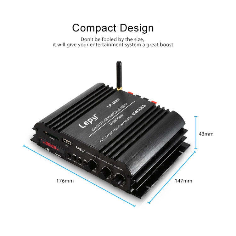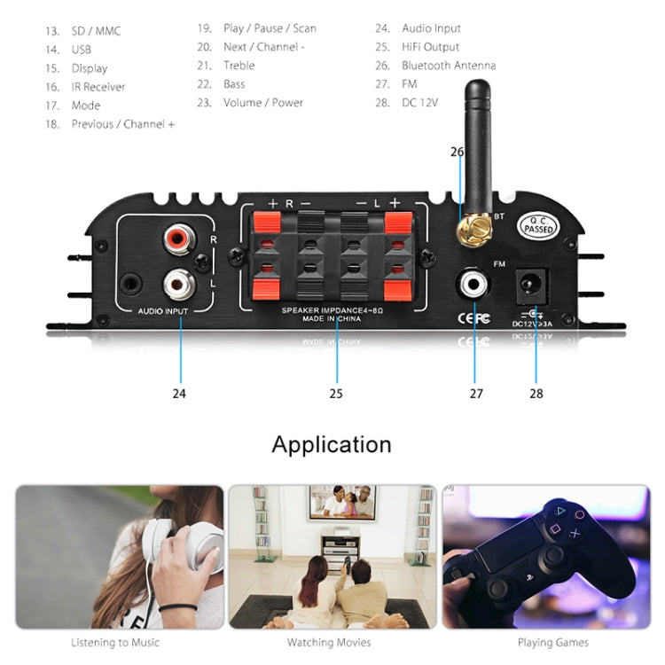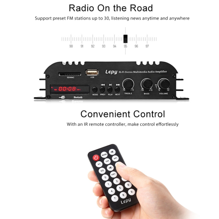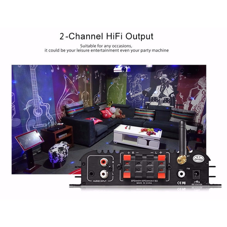 Car / Household Four Channels LED Display Amplifier Audio, Support Bluetooth / MP3 / USB / FM / SD Card with Remote Control, EU Plug