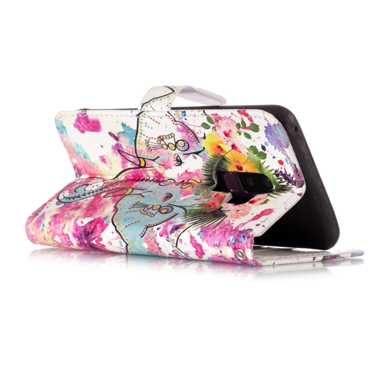 For Galaxy S9+ Gloss Oil Embossed Flower Elephant Pattern Horizontal Flip Leather Case with Holder & Card Slots & Wallet