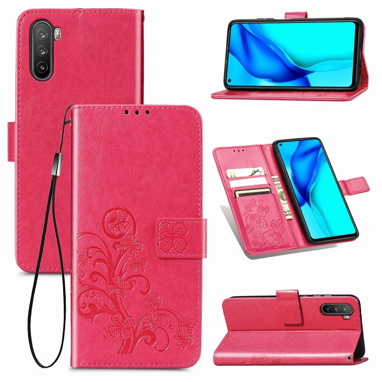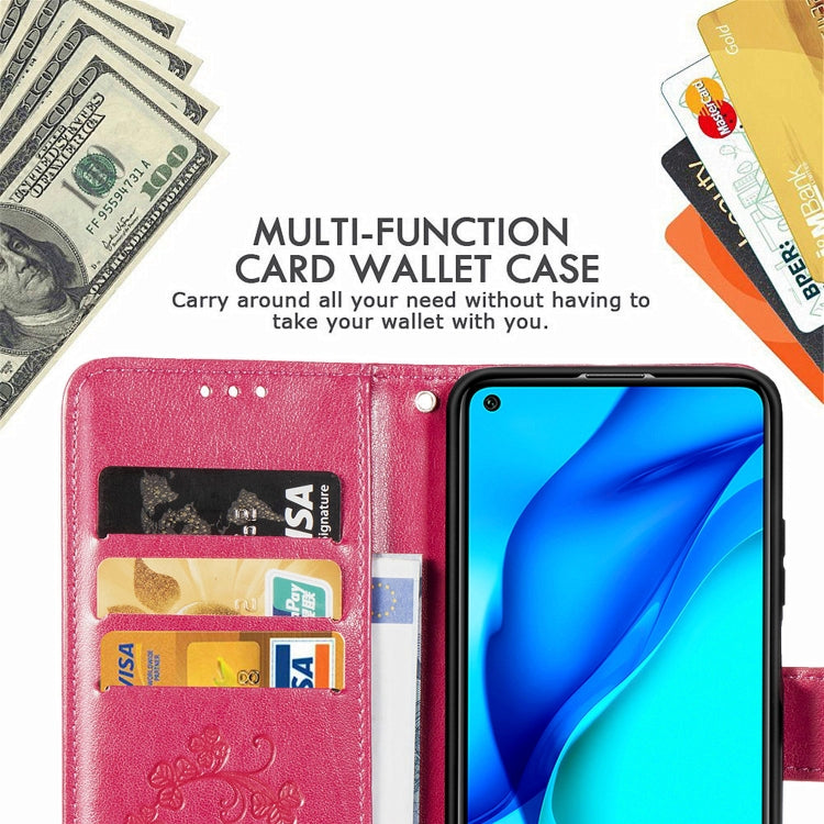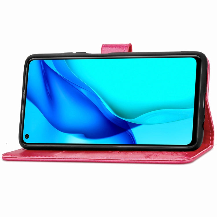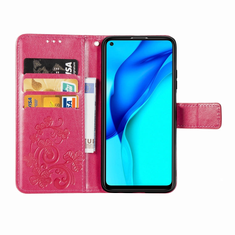 For Huawei Mate 40 Lite /Maimang 9 Four-leaf Clasp Embossed Buckle Mobile Phone Protection Leather Case with Lanyard & Card Slot & Wallet & Bracket Function(Magenta)