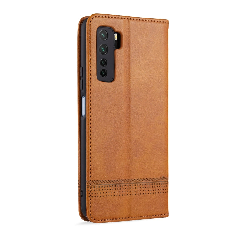 For Huawei Nova 7 SE AZNS Magnetic Calf Texture Horizontal Flip Leather Case with Card Slots & Holder & Wallet(Light Brown)