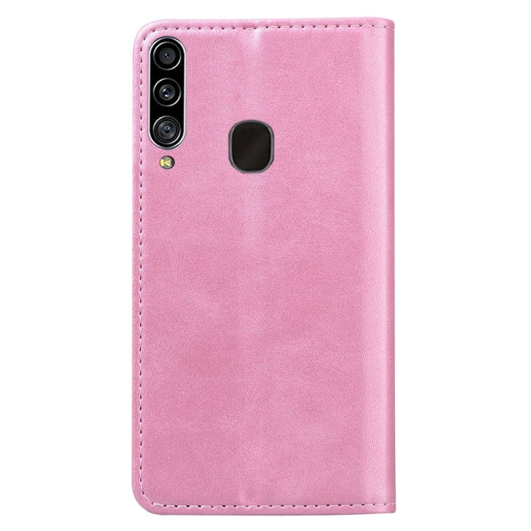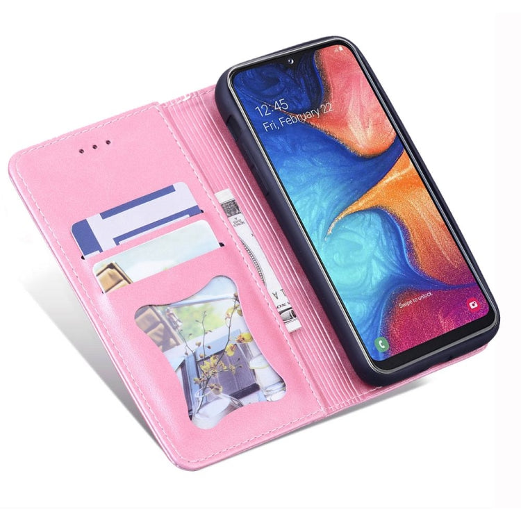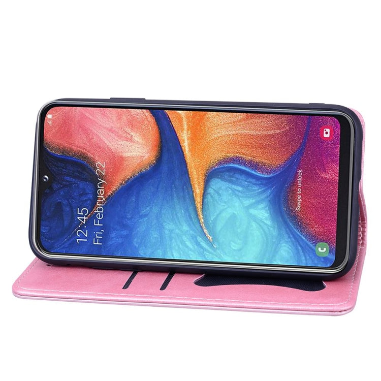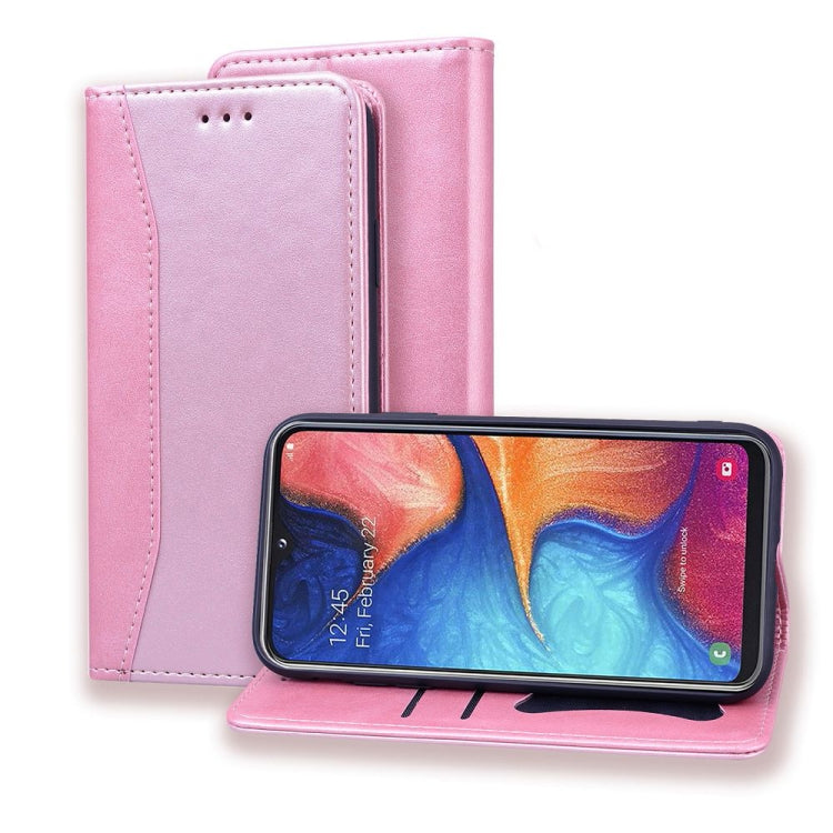 For Samsung Galaxy A20s Business Stitching Horizontal Flip Leather Case with Double Folding & Bracket & Card Slots & Photo Frame & Wallet(Rose Gold)